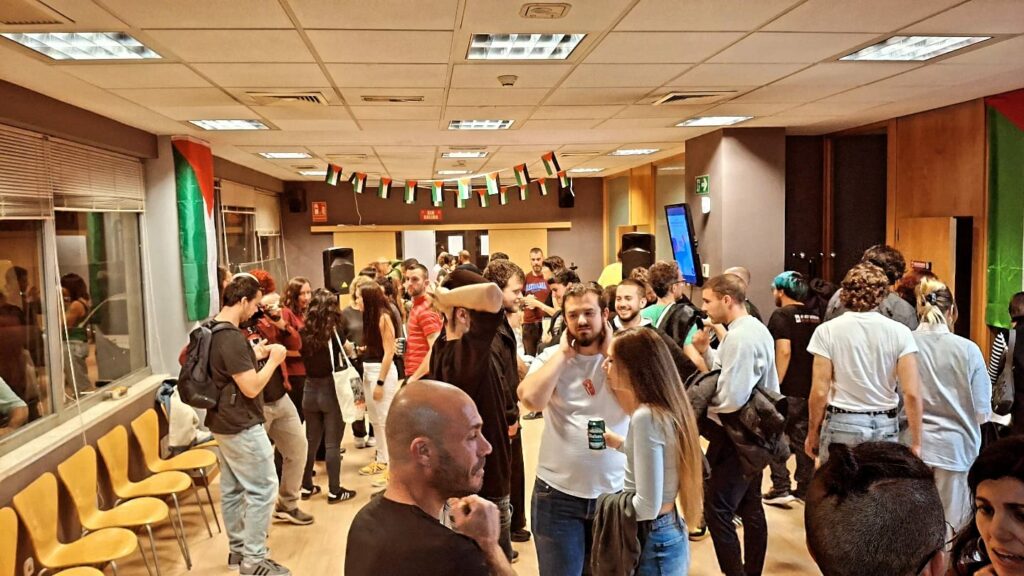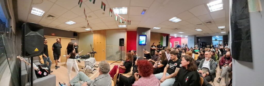 Tras unas palabras de las organizaciones presentes sobre la situación en Palestina y la Huelga Convocada pasamos a tejer redes con dos actuaciones musicales.