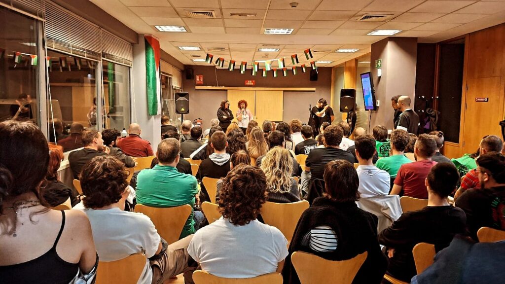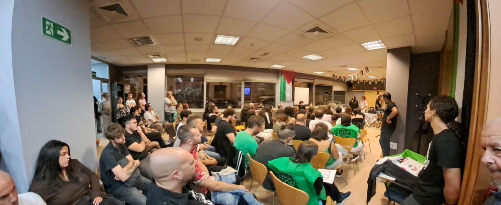 El sábado 11 de octubre se celebró el acto de presentación de la huelga General por Palestina para el 15 de octubre con la presencia de mas de un centenar de personas.